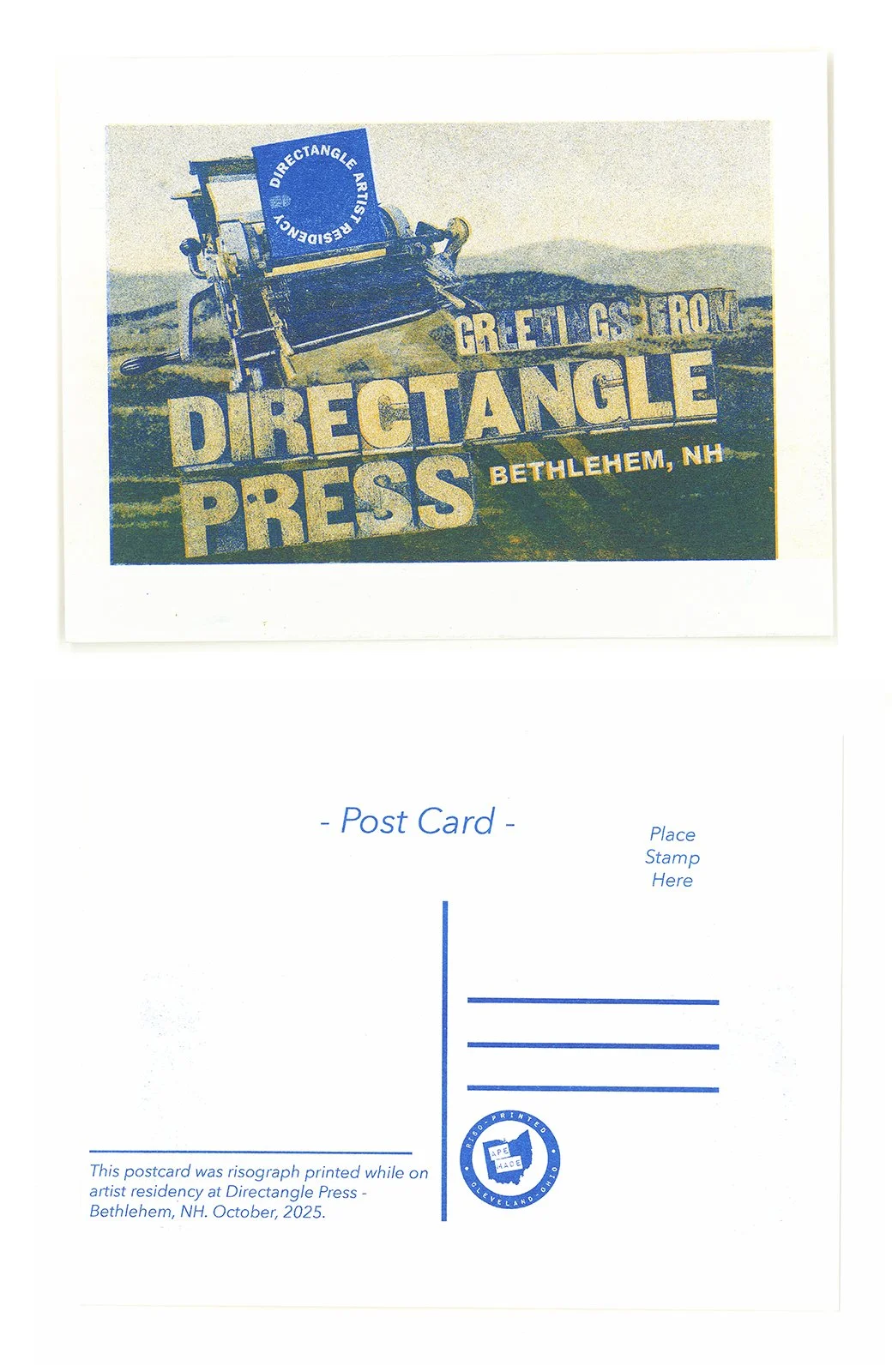 Now a long-held tradition of mine when on residencies, creating a custom postcard while there.