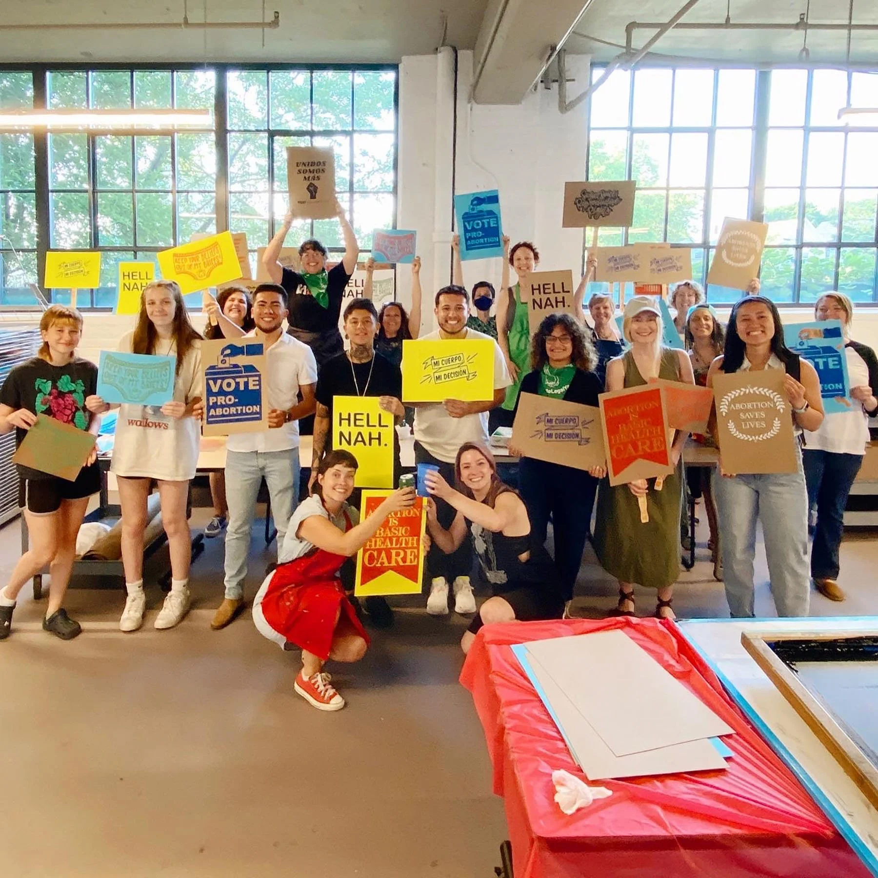 Hannah Manocchio and I each brought our original designs for a community protest poster print pop-up at Future Ink Graphics, in conjunction with the Young Latino Network. The workshop was held immediately following the news of Roe’s overturning, offered free and open to the public.