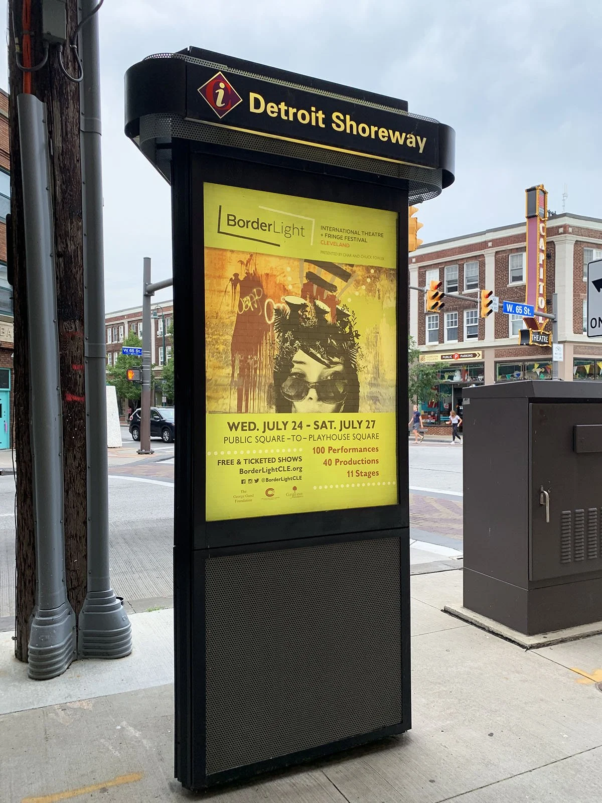 I created the art for the 2019 inaugural year of BorderLight’s International Theatre + Fringe Festival in Downtown Cleveland. The festival was looking for something aspirational with a gritty but sophisticated feel and a broad, international appeal. The design was utilized in a broad range of materials and applications for the festival.