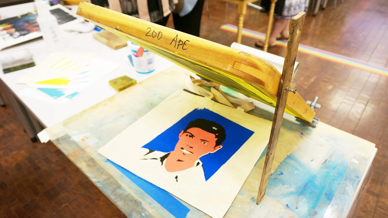 Young Artists and Writers Festival: A mono screen printing portrait workshop, inspired by pop artists past and present. Working with juicy one-of-a-kind color blends, drips, drags, pulls, painting, stencil, and handmade mark making, we combined this colorful and painterly mixed media approach to our individualized portraits on wood panels.